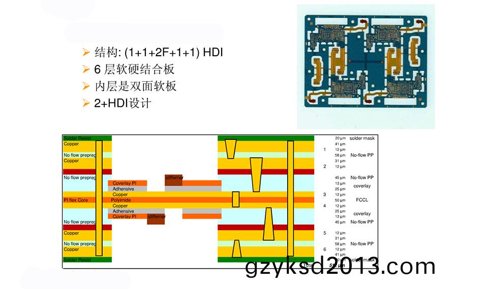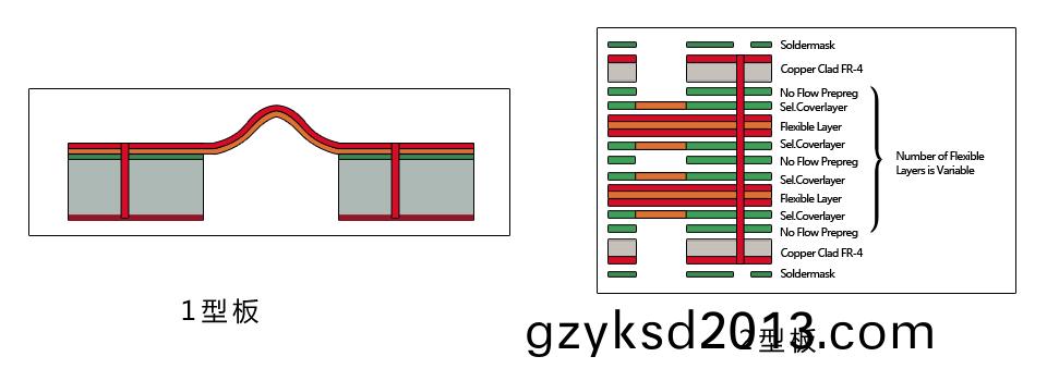 软板(FPC)和硬板(PCB)粘贴成一体,粘贴处无镀覆孔连接,层数多于一层。